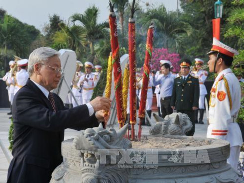 同一天晚上,越南政府总理阮春福与400位越南英雄母亲、伤残军人、烈士家属和为国立功者,以及各部门和广南省各地领导人与广大当地居民出席在广南省三岐市举行的以“红花年代”为主题的缅怀为革命立功者艺术晚会。