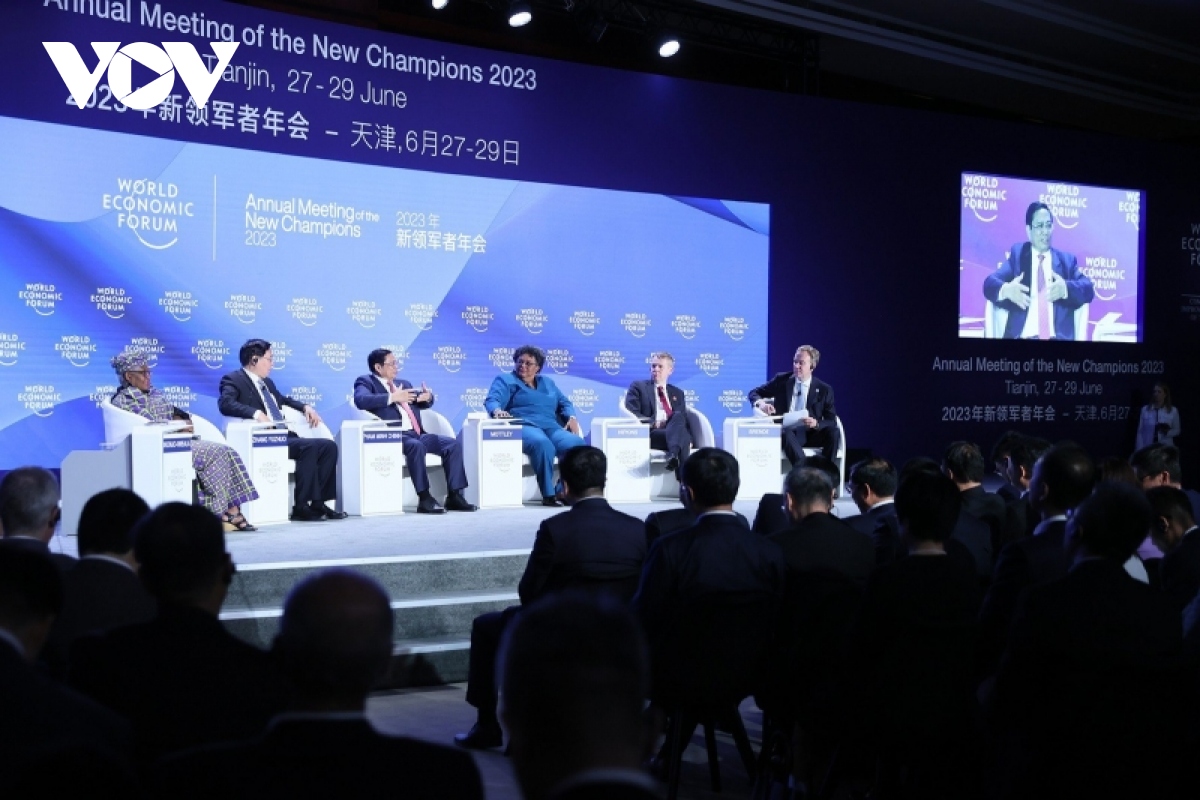 出席在中国天津举行的世界经济论坛第十四届新领军者年会期间,6月27日上午,越南政府总理范明政与新西兰总理克里斯·希普金斯举行双边会晤。
