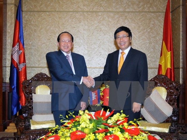 越南政府总理阮晋勇、柬埔寨首相洪森和两国有关部门、地方和边民代表出席仪式。