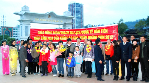 越南旅游部门接待壬辰年第一批游客。大年初一,1400多名中国游客从老街国际口岸入境越南。他们不仅游览下龙湾,还将到越南各地旅游。这是老街旅游部门的一个可喜信号。该省今年的目标是接待100万人次游客。去年,老街省共接待游客90万人次,旅游收入一万亿越盾。平明国际旅游公司经理黎英大表示,中国黄金周是越南国际旅行社的一大商机。他说:“我们已经做好了各方面准备,从导游、车辆到服务。今年春节,我们公司接待300至500持出入境通行证的中国游客。这些游客分三大类。第一类坐火车游览下龙湾。第二类坐大巴游览河内、下龙和宁平。第三类是自驾游。”