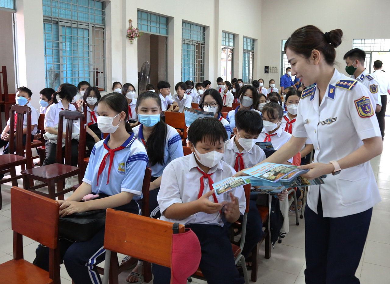 活动上,师生们听取海上警察第三区司令部报告员介绍当前海洋岛屿情况,党和国家关于东海问题的主张、政策和法律,越南海洋岛屿和边界安全问题,证明越南对黄沙和长沙两座群岛拥有合法主权的历史证据和法律依据,越南《海警法》主要内容等。