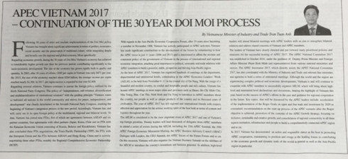 图案下方是举办APEC各场重要会议的河内、岘港、胡志明市等越南各大城市的形象。