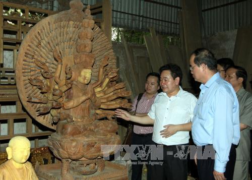 越南祖国阵线中央委员会主席阮善仁考察山同美术品村