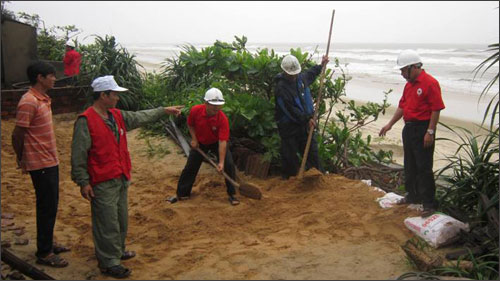 在第11号台风侵袭中部各省后,克服种种困难赶赴灾区的越南红十字会干部阮友胜说,红十字会一向是在台风登陆后第一个赶赴现场并与当地政府配合救灾,向灾区群众尽快 提供物质和精神帮助,让灾民感到温暖,共度难关。