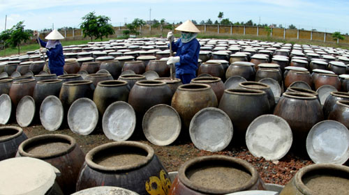 (VOVworld)- 谈到越南,不得不提我国十分丰富的饮食文化。在越南人的饮食中,各种调味料特别是酱具有重要意义。越南63个省市,有数百种酱,其中的代表如北部鱼露、小蟹酱、中部酸辣虾酱、南部黑鱼酱等等,不同地区的鱼露有着不同的特色,体现了越南饮食文化的丰富和独特。