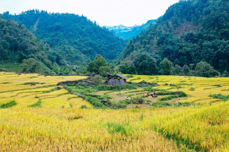 一般来说,天地入秋后,当地糯米田大部分成熟,但仍有几块地还绿着。这时候就是秀丽最迷人的季节。图片来源:越通社。