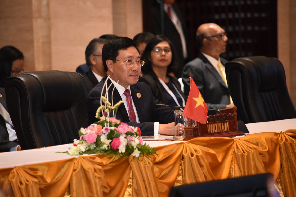 越南政府副总理兼外长范平明率团与会。作为东盟与印度关系协调国,范平明共同主持了东盟与印度外长会。