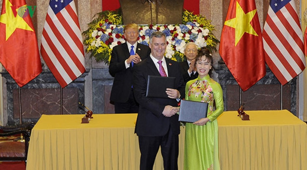 会谈结束后,阮富仲与特朗普见证了总价值210亿美元的重要经济合作协议的签署。 |