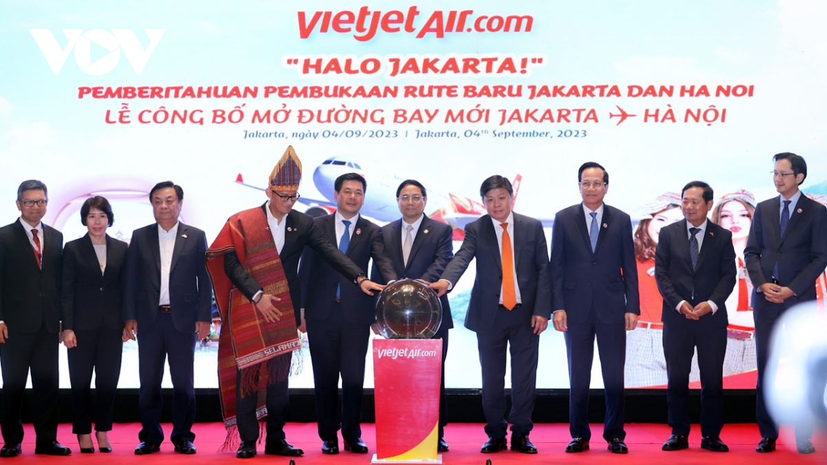 范明政出席越捷航空公司河内至雅加达直达航线开通仪式