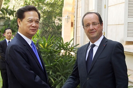 25日晚,阮晋勇与法国总理埃罗举行会谈。双方签署联合声明,正式将两国关系升级为战略伙伴关系。这打开了两国多边关系和多边合作的新篇章。