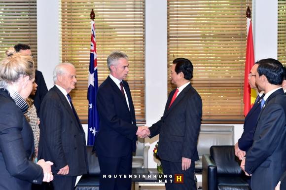 在18日的会谈上,阮晋勇和澳大利亚总理托尼•阿博特讨论了有关重要和优先问题,其中包括贸易、投资、教育、开发合作、国防、东海问题等,以及双方关于发挥东亚峰会战略作用和促进地区安全的共同承诺。