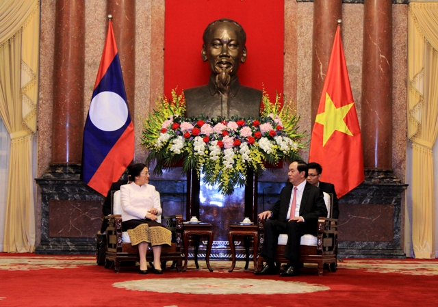 (VOVworld)- 越南国家主席陈大光3月16日在主席府会见正对越南进行正式访问的老挝人民革命党中央书记处书记、老挝公安部部长宋乔•西拉冯(Somkeo Silavong)。