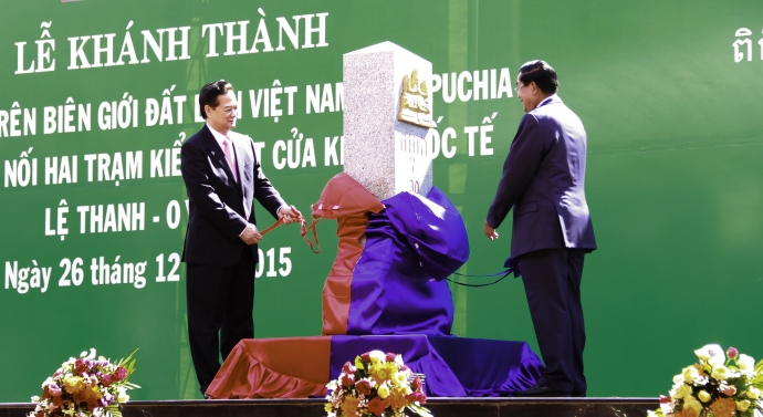 越南政府总理阮晋勇和柬埔寨首相洪森出席越柬界碑落成揭牌仪式