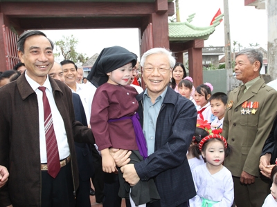(VOVworld)- 适值越南民族统一阵线成立82周年之际,越共中央总书记阮富仲11日下午出席南定省海后县海北乡第四村人民举行的“全民族大团结日”活动