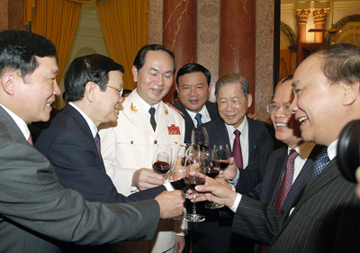 阮富仲表示,在刚刚过去的2012年,越南取得了一些突出成就,例如:宏观经济保持稳定,通货膨胀得到控制,消费物价指数趋降,银行流动性逐步改善,汇率基本稳定,社会民生和社会福利基本得到保障。医疗卫生、教育培训、科学技术等领域取得进步。国防安全得到加强,社会政治稳定。越南的国际地位继续提高。