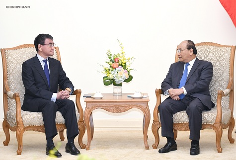 在会见日本外相河野太郎时,阮春福表示,希望加强东盟-日本和湄公河-日本合作,尤其是在越南担任2018至2021年阶段东盟-日本关系协调员的背景下。