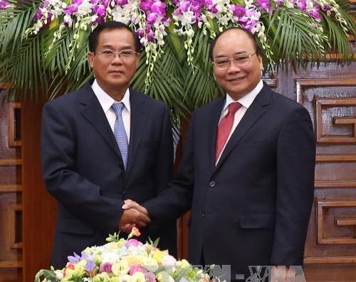 越南政府总理阮春福会见老挝计划投资部长苏潘•乔米赛