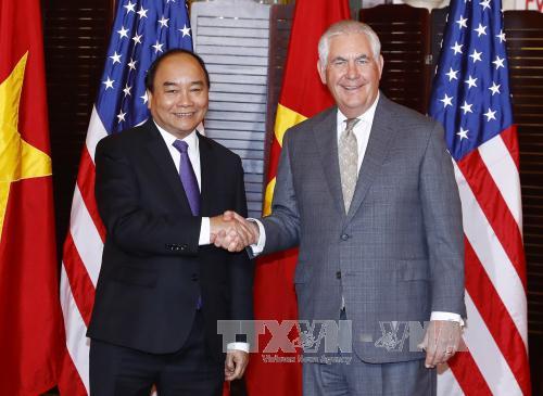 阮春福总理(右)与美国国务卿蒂勒森 |