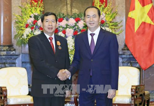 越南政府总理阮春福(右)与老挝总理通伦 |