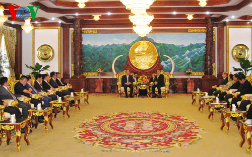 (VOVworld)- 正对老挝进行工作访问的越南政府副总理、越老政府间合作委员会越方主席阮春福12月10日礼节性拜会老挝人民革命党中央总书记、国家主席朱马里和国会主席巴妮。