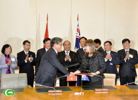 ( VOVworld ) –    应澳大利亚副总理兼国库部长韦恩·斯旺的邀请,越南政府副总理阮春福率越南高级代表团9日抵达堪培拉,开始对澳大利亚进行为期5天的访问。阮春福10日下午在会见澳大利亚总理吉拉德时,对双边合作机制的运作效果予以高度评价。两位领导人强调,应加强各层级互访,努力推动两国经贸投资合作,加大2010-2013年越-澳行动计划的实施力度,并举办切实活动,纪念两国建交40周年。双方还就共同关心的国际和地区问题,特别是维护东海的和平、稳定和合作进行讨论,并认为,东海争端应基于遵守国际海洋法,特别是1982年联合国海洋法公约加以解决。双方也表示,将继续加强两国在地区和国际论坛上的协调合作。