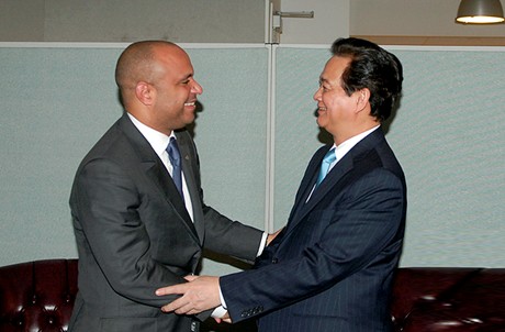 阮晋勇表示,越南愿与海地分享扶贫、发展教育和卫生等领域的经验,积极参加海地重建计划。