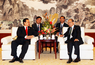 | 阮晋勇与缅甸总统吴登盛。图片来源:政府网 |