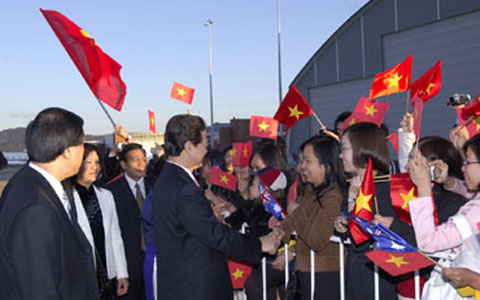 (VOVworld) - 访澳期间,越南政府总理阮晋勇一行3月17日上午在悉尼与越澳企业代表就越南经济的发展及越澳全面伙伴关系中的合作机遇举行对话。阮晋勇表示,目前共有100多家世界一流集团在越南投资,越南成为了投资商值得信赖的投资热土。