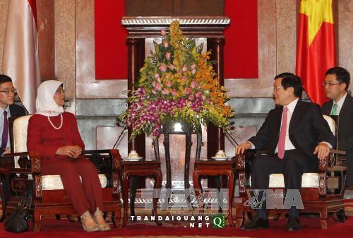 阮晋勇重申,重视并努力同新加坡一道继续推动两国合作关系在所有领域日益深入、务实、有效发展,造福两国人民并为建设东盟共同体作出贡献。