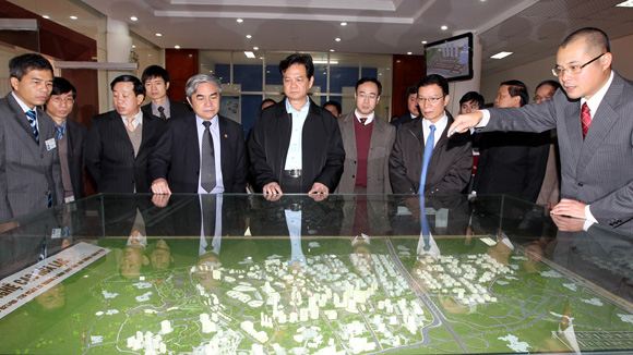越南政府总理阮晋勇十三日下午视察和乐高新技术园区,并与该区管理委员会领导人举行会议