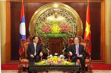 (VOV)- 越南政府总理阮晋勇12月26日在政府总部会见老挝人民革命党中央总书记、国家主席朱马利·赛雅贡。他重申,越南一向重视并将巩固和加强与老挝的特殊团结与全面合作关系置于最高优先地位。朱马利高度评价两国政府全面合作取得的成果,以及两国合作委员会为此做出的贡献。他并表示坚信,在两国政府的领导下,两国全面合作将继续深入发展,为两国胜利实现发展计划和合作目标做出贡献。阮晋勇和朱马利同意将继续作出努力,推动两国在所有领域的全面传统友好合作关系发展。