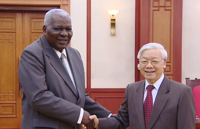 越南国会主席阮氏金银21日在河内会见前来辞行拜会的古巴驻越大使埃米尼奥·洛佩斯·迪亚兹(Herminio Lopez Diaz)。