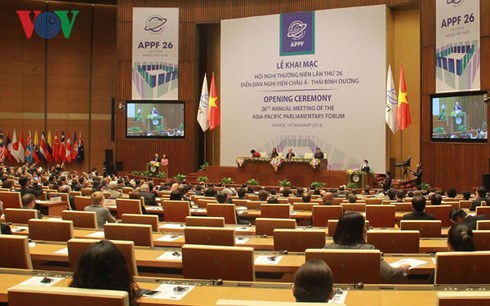 (VOVWORLD) - 亚太议会论坛第26届年会在河内举行期间,越南国会主席阮氏金银1月19日上午会见日本参众两院代表团团长柳本。