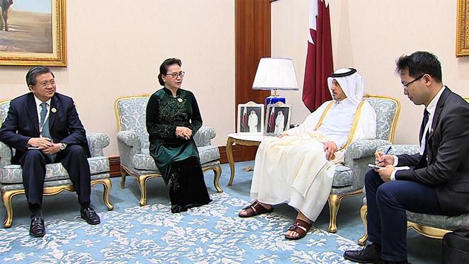 阮氏金银会见卡塔尔埃米尔塔米姆·本·哈马德·阿勒萨尼 |