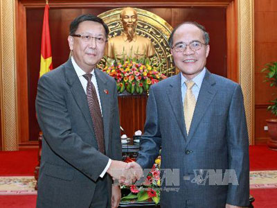 (VOVworld)- 越南国会主席阮生雄12日会见来访的泰国国会上议院第一副议长素拉差