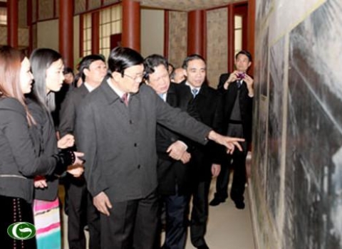阮生雄一行还在胡志明主席曾生活和工作的旧址——纳罗棚上香,参观山阳县国家级特别历史遗迹区新潮亭,探望并向山阳县为国立功者家庭赠送礼物,看望山阳县黎文孝小学和初中师生。