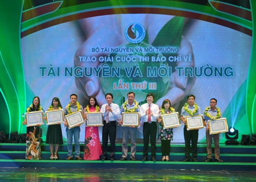 越南驻阿大使范国柱(中间)向两位记者颁奖