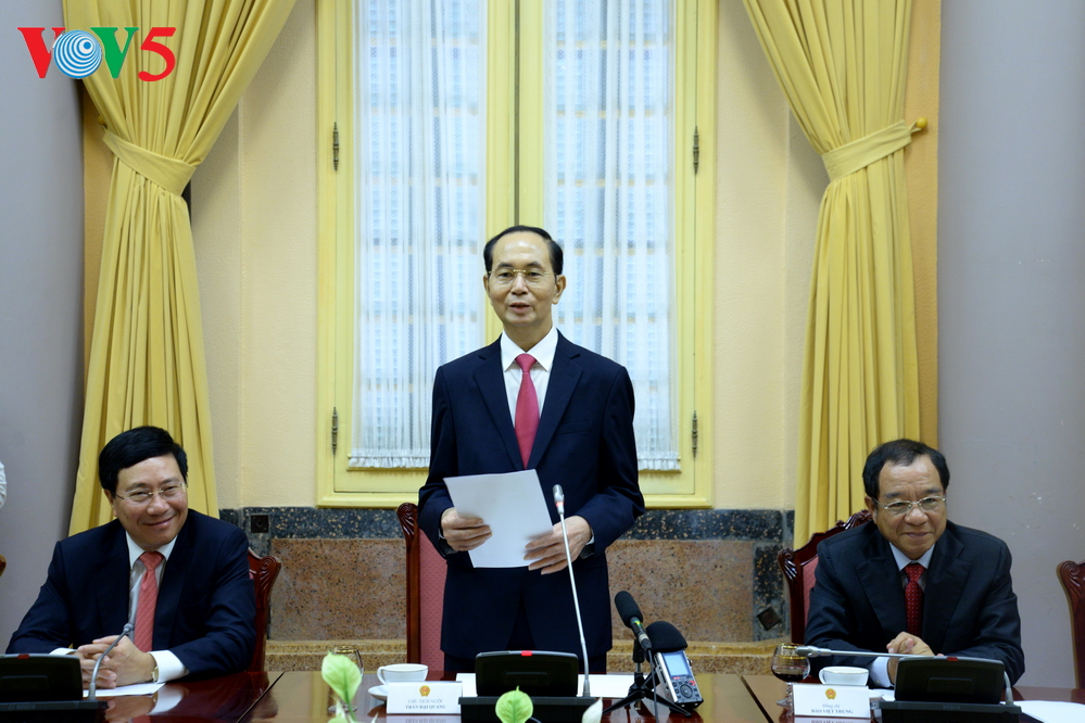 在仪式结束后举行的会见越南24位大使和首席代表活动中,陈大光指出,国际和地区形势复杂多变。世界经济进入新的发展周期,机会与挑战并存。国际和地区政治、安全形势所发生的变化比预期要快,不确定性和难测性增加。