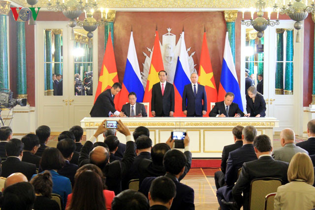 越南国家主席陈大光和俄罗斯总统普京出席两国合作文件签署仪式 |