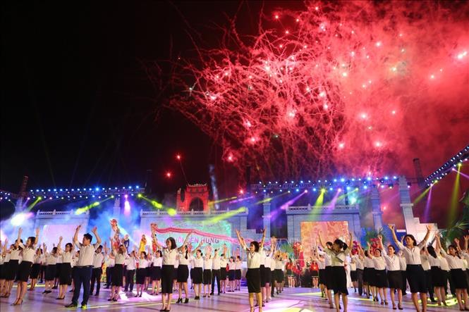 12日晚,“越池——溯源盛会城市”狂欢节在越池市雄王广场举行。富寿省1400多名艺术家、演员、群众和芹苴市、义安省、山萝省等的艺术代表团参加活动。每个地方都献上当地特色文化,为祖地文化画卷增添色彩。