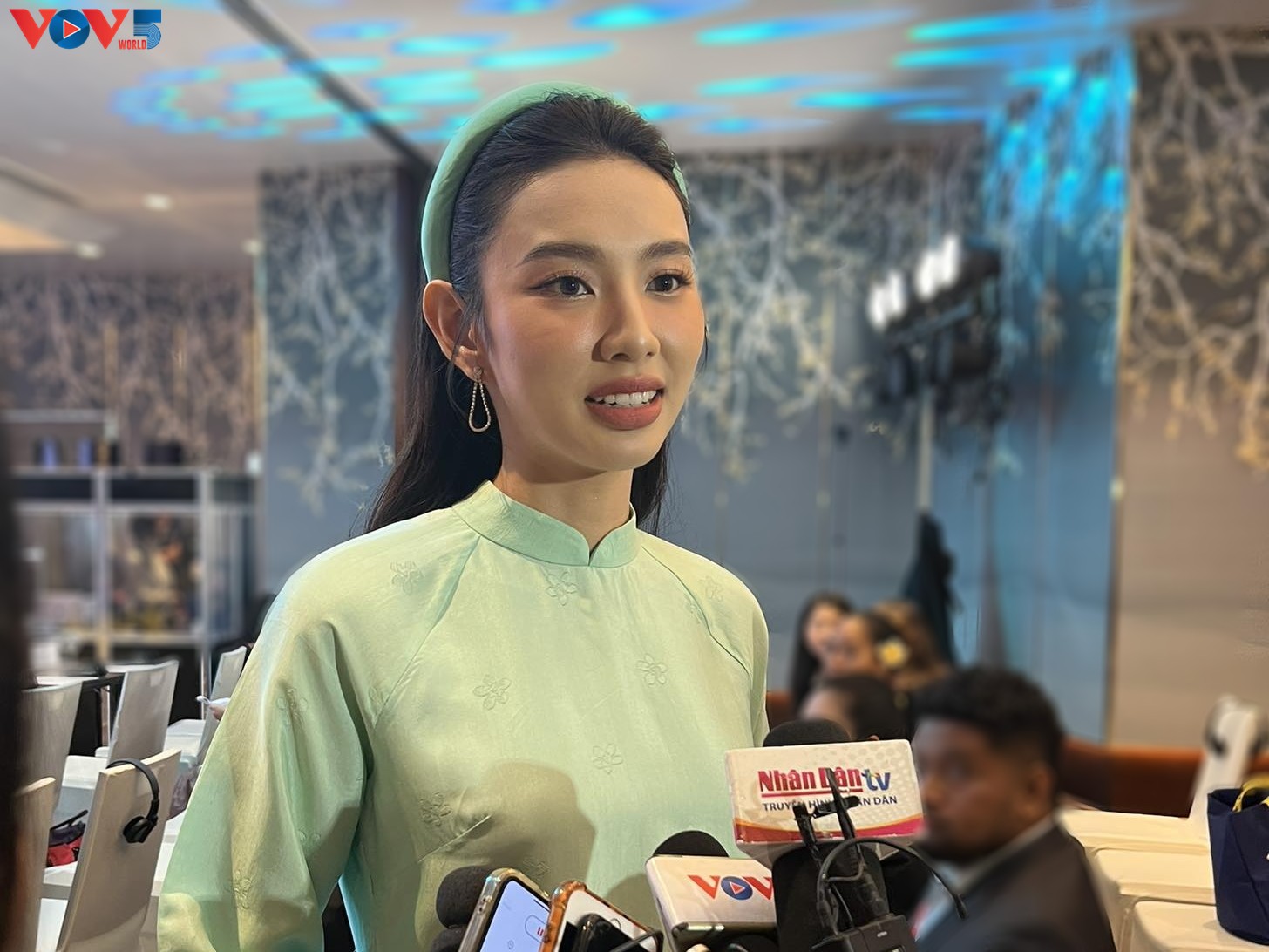 越南代表团代表、2021年“万国小姐选美大赛”冠军阮淑垂仙。