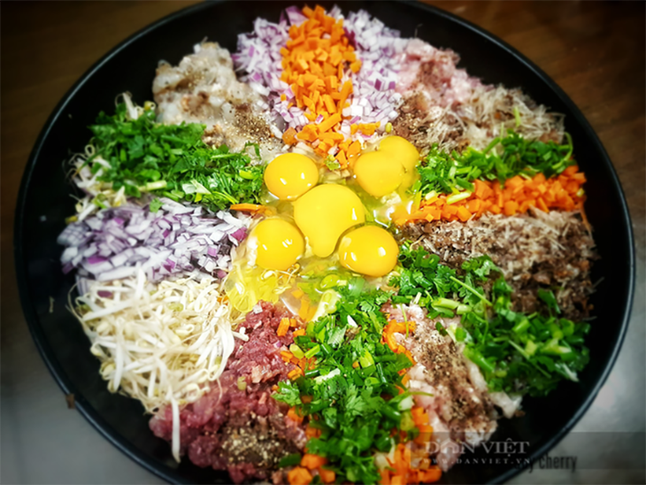 春卷的原料包括碎肉、粉丝、胡萝卜、豆芽、鸡蛋、木耳、香菇及其他调味料。图片来源:《 danviet.vn》。
