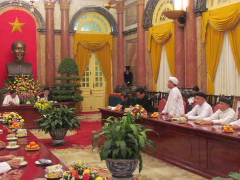 (VOVworld) - 越南国会副主席丛氏放1月21日会见来京参观的高台教教会神职人员代表团。 会见中,丛氏放对高台教神职人员和教徒近90年来作出的巨大贡献予以高度评价,并希望高台教神职人员继续发扬优良传统,与民族并行,良好开展“建设居民区文化生活”运动,加强宣传,使高台教信徒深入了解党和国家的方针政策。她还鼓励高台教神职人员向1992年宪法修正草案提供宝贵意见。 适值2013新年,丛氏放向全国一万多名高台教神职人员和两百五十万教徒致以节日祝贺。