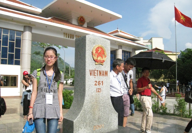 14日下午,营员们看望了渭川县清水口岸边防站指战员,听取了关于越中尤其是河江省边境地区和河江省与中国云南省陆地边界的形成过程和勘界立碑工作情况的简要介绍。