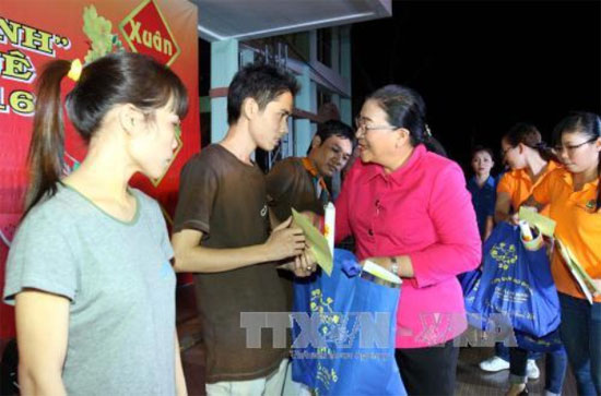 胡志明市向没条件回家过年的工人赠送2800多份春节慰问品