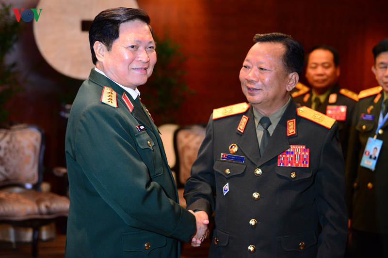 吴春历大将(左)会见老挝国防部长森暖·赛雅拉 |