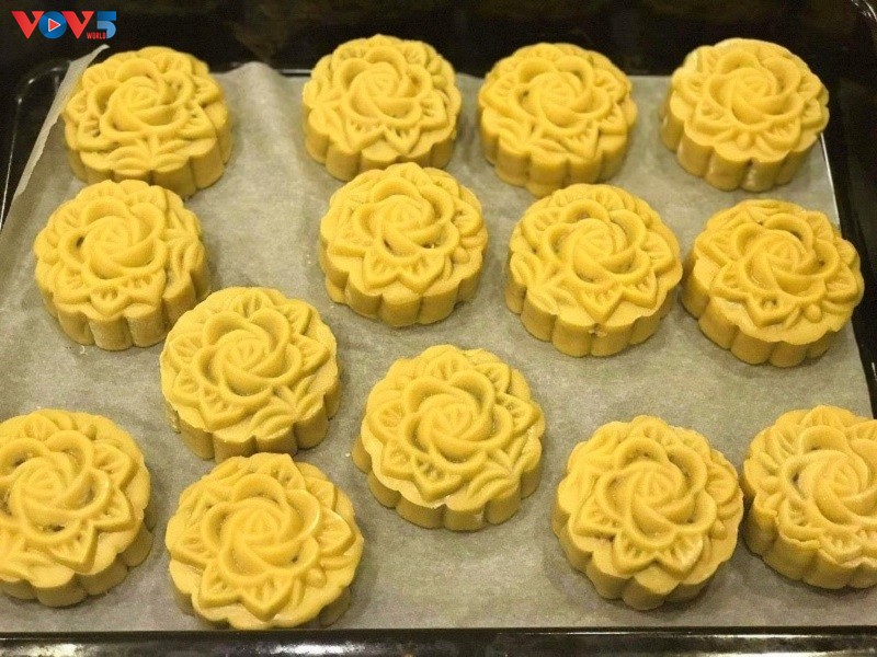 既满足做月饼的兴趣,又让孩子更加了解中秋节,河内市民阮秋荷上网购买原料,自己做好吃而诱人的月饼。图:秋荷/VOV |