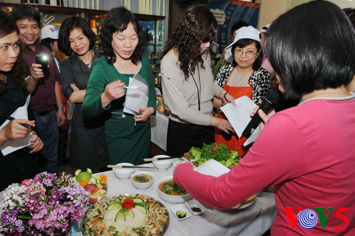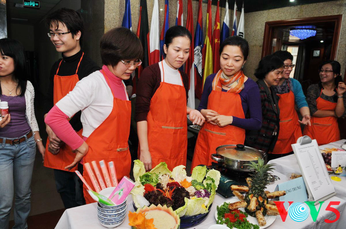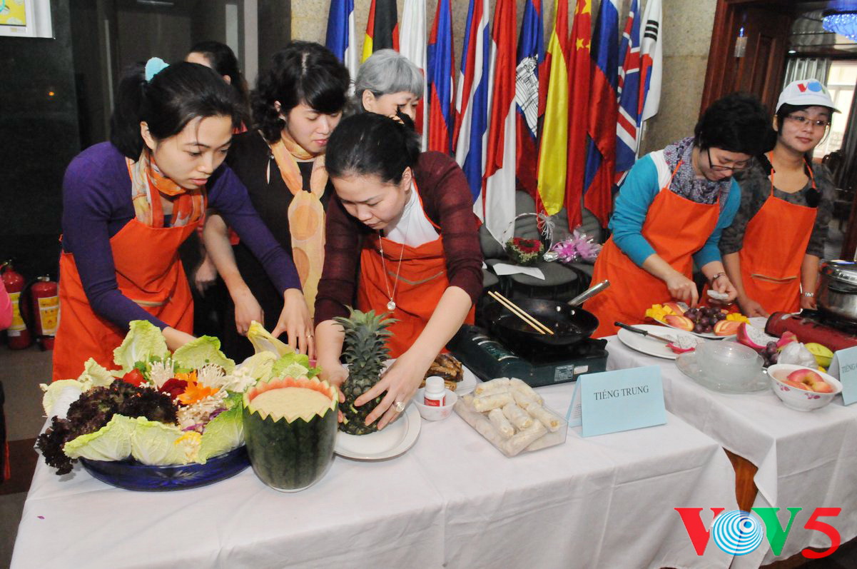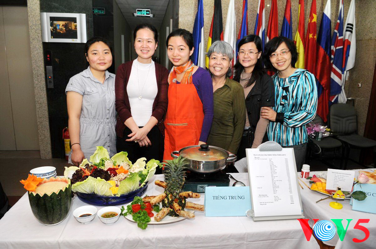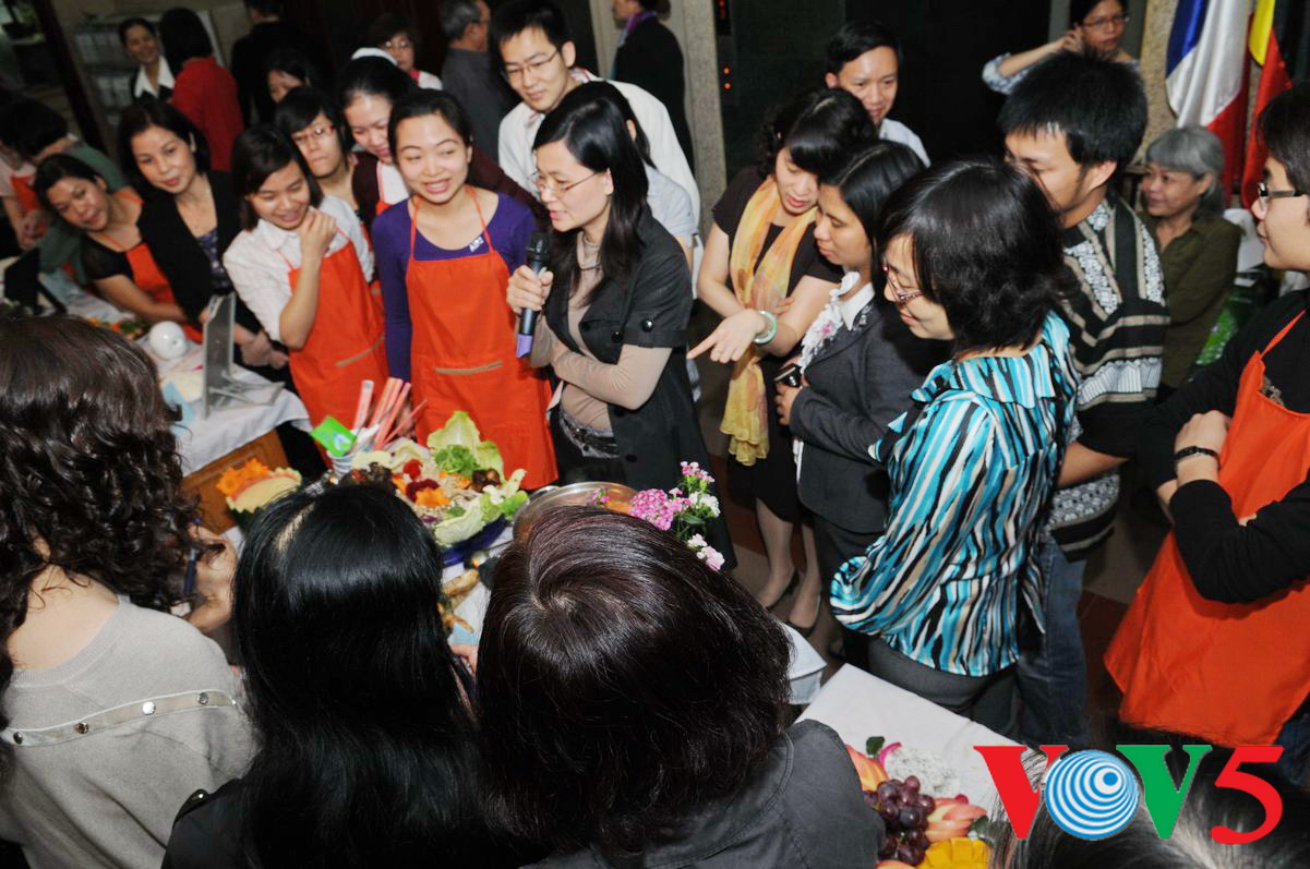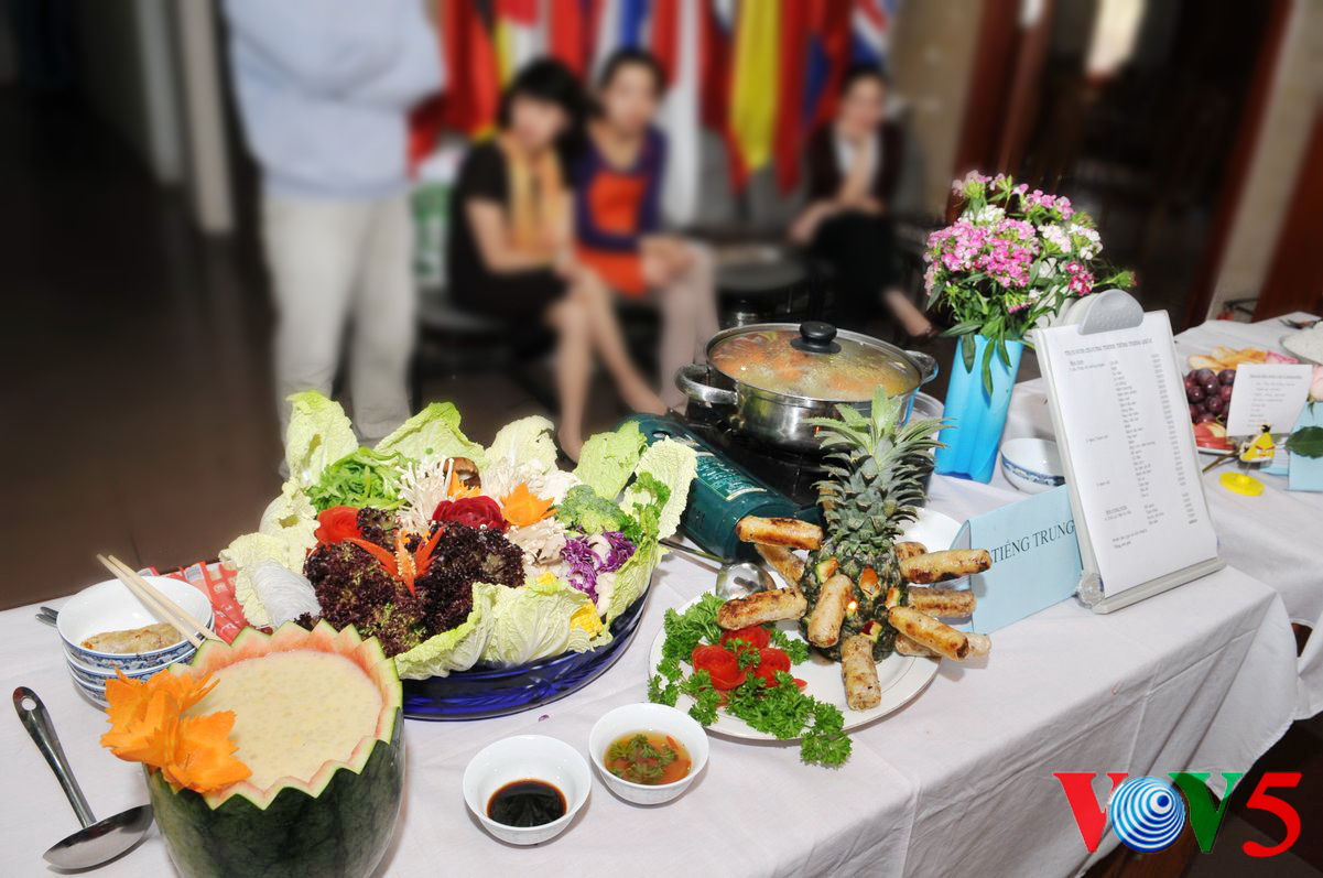 英语部用水果拼出"河内美食"字样 |