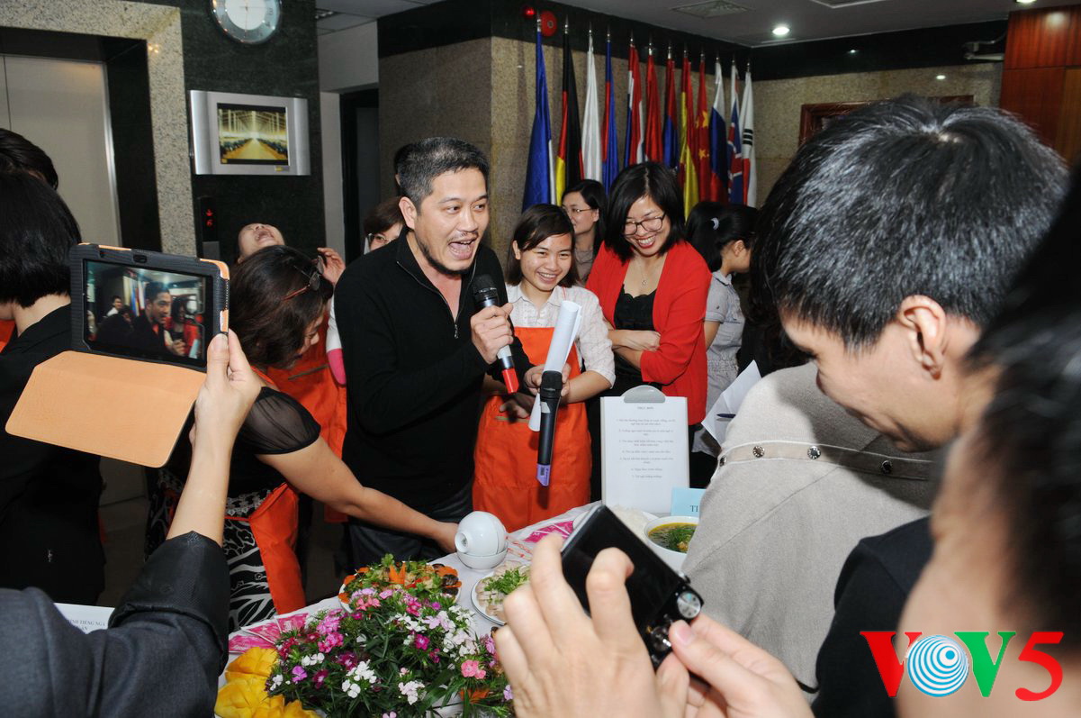 华语组引来众人围观。吴碧顺副主任向评委介绍菜色构思 |