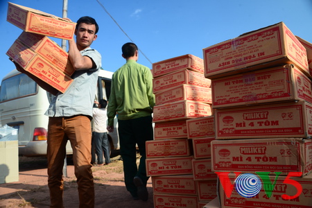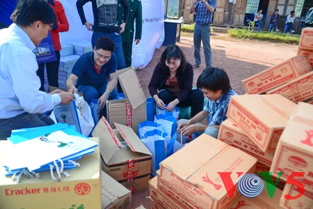 对外广播频道副总监阮氏翠兰(右二)同团员一起准备援助品